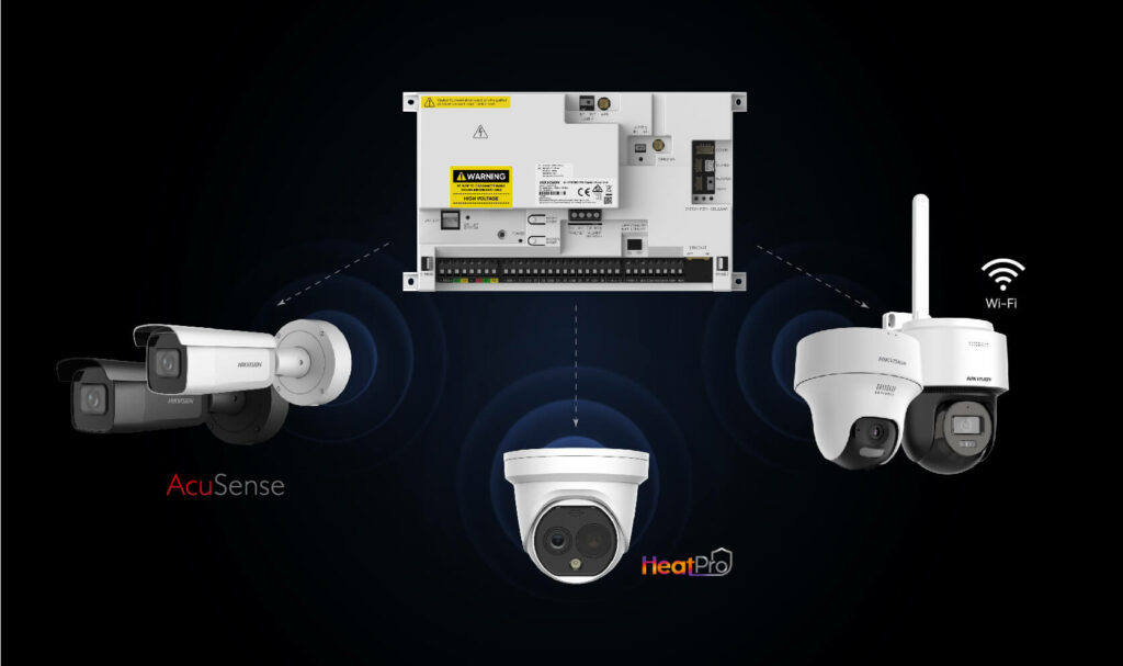 Faites collaborer votre centrale avec les caméras AcuSense, HeatPro et Wi-Fi. Cette intégration native crée un bouclier périmétral intelligent et unifié pour une protection totale.